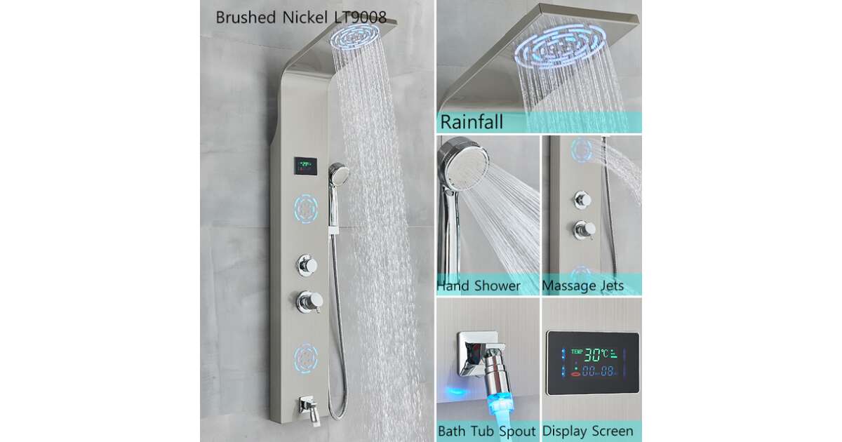 Ezt a terméket így is ismerheted: Zuhanypanel, Blackswan, M9008 típusú nikkel modell LED-del, digitális kijelzővel, csapteleppel és SPA funkciókkal, méret 114 cm